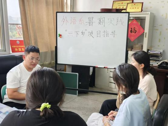 行动前,外语系团总支书记陈超和各团队成员研讨实践计划,扎实推进“三下乡”筹备工作,指导打磨活动方案。
