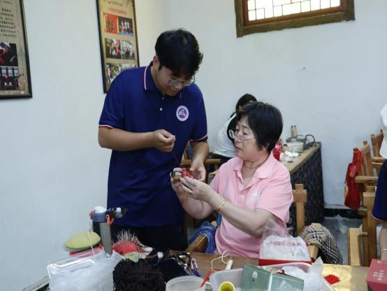 “非遗语翼”实践团围绕弘扬马庄村香包文化主题开展社会实践活动。团队实地参观马庄文化展览馆与香包制作展览馆,深入了解香包历史渊源与工艺特色,亲手参与香包缝制等实践环节;同时通过直播形式展示香包制作全过程,并融入部分英文讲解,实践团以“参观+体验+传播”模式,助力传统香包文化破圈传播